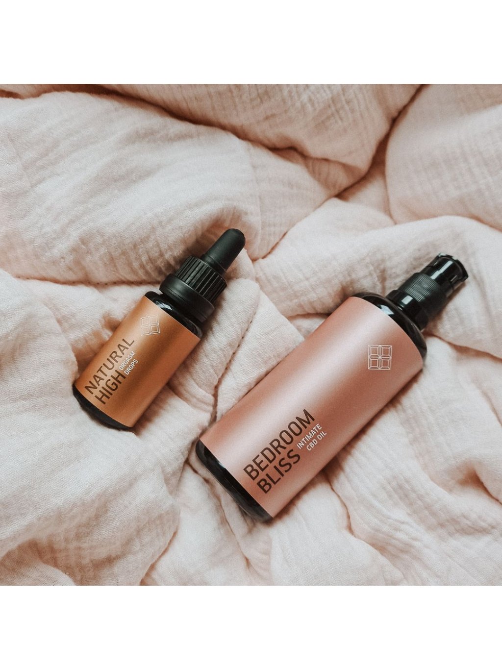Kapky Natural high orgasm drops jsou vyrobeny z podobných přírodních ingrediencí jako intimní olej Bedroom bliss, mají ale vyšší % obsah CBD a jiné poměry surovin. High orgasm CBD drops mají také jinou konzistenci a poskytují vzrušující doplňující péči k intimnímu oleji Bedroom bliss. Oba produkty můžete zakoupit také ve výhodné sadě a užít si tak ještě více zábavy :)